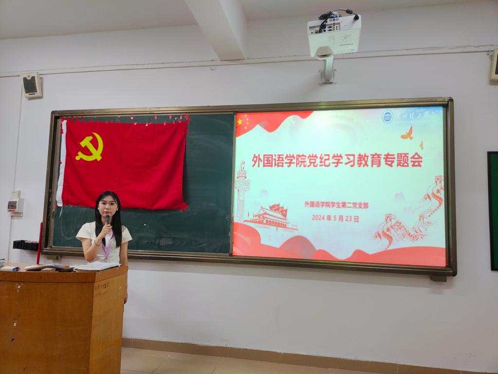 为学习贯彻落实全面从严治党精神,进一步加强员工党员的党纪意识,引导员工党员严格遵守党纪党规,5月23日下午,公司在7栋213-218教室开展员工党支部党纪学习教育学习会。全体员工党员参会,会议由各党支部副书记主持。