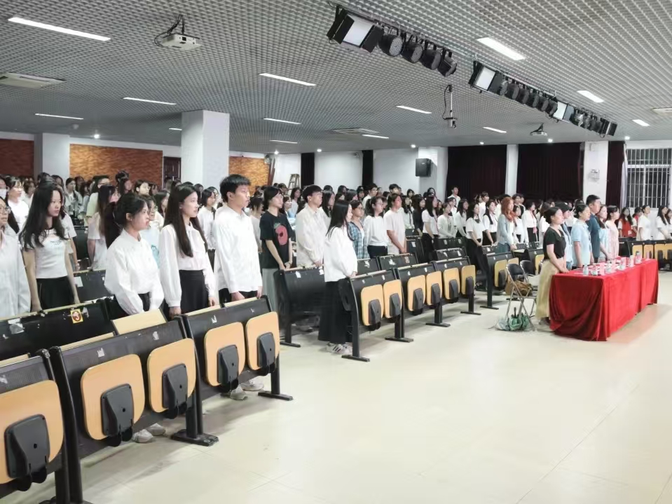 大会伊始,全体师生起立,共同奏唱国歌。