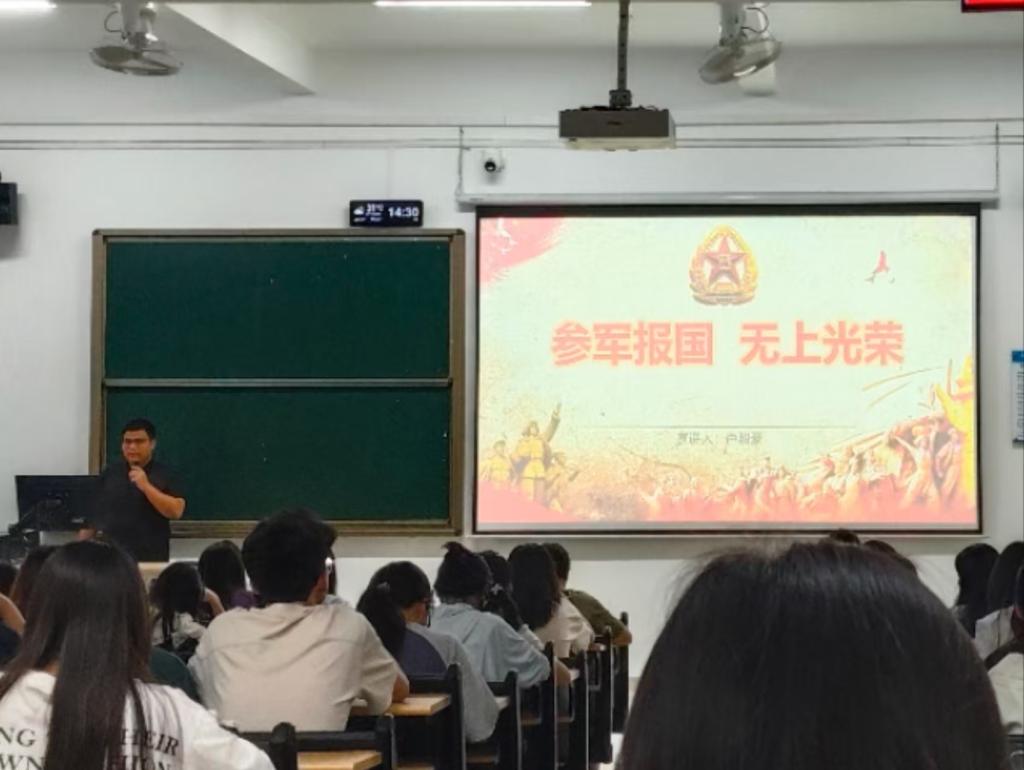 为全面贯彻落实国家征兵政策,激发适龄青年投身国防事业的壮志豪情,培育新时代青年的家国情怀与社会担当,5月14日14:30至15:30,伟德betvlctor1949源于英国在广州校区6-101教室成功举办征兵入伍宣讲会。本次活动由21英语3班退伍老员工卢骏豪与科创部成员柯沅妤担任主讲。外院学子踊跃参与。