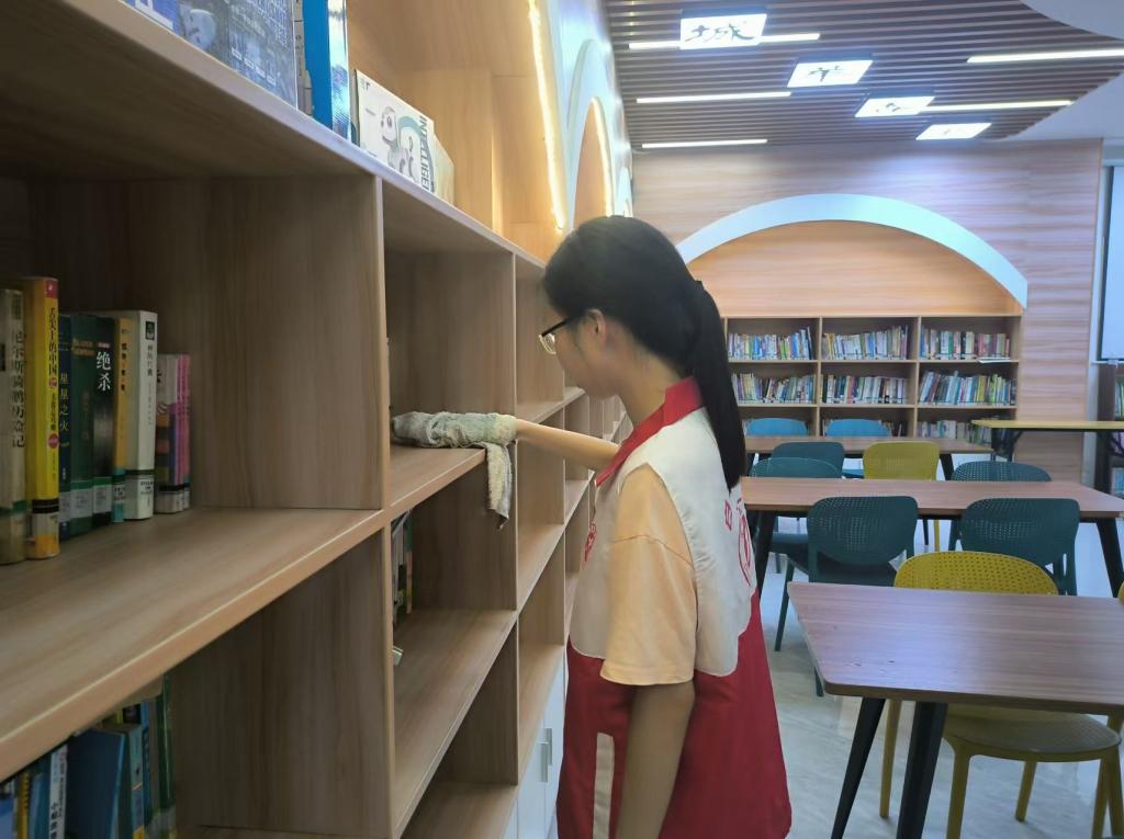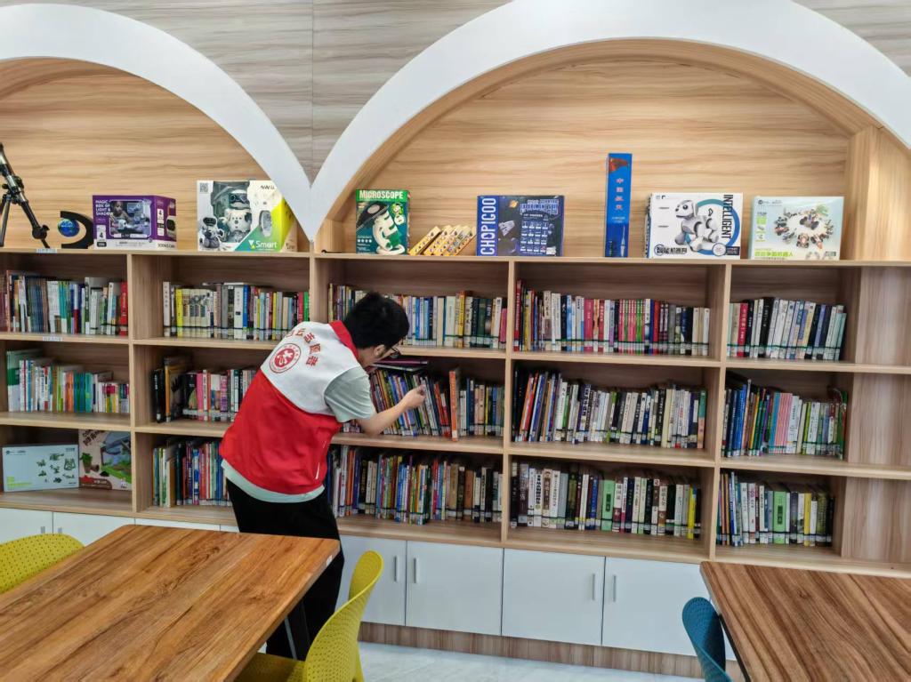活动当天,志愿者们身着标志性的红马甲,准时抵达图书馆。他们迅速明确分工,投入到紧张有序的清扫工作中。负责清洁的志愿者手持扫帚、抹布,对图书馆的地面、书架、桌椅进行细致清理,不放过任何一个角落;负责书籍整理的志愿者,则耐心将书籍分类、排序,让书架恢复整齐有序。