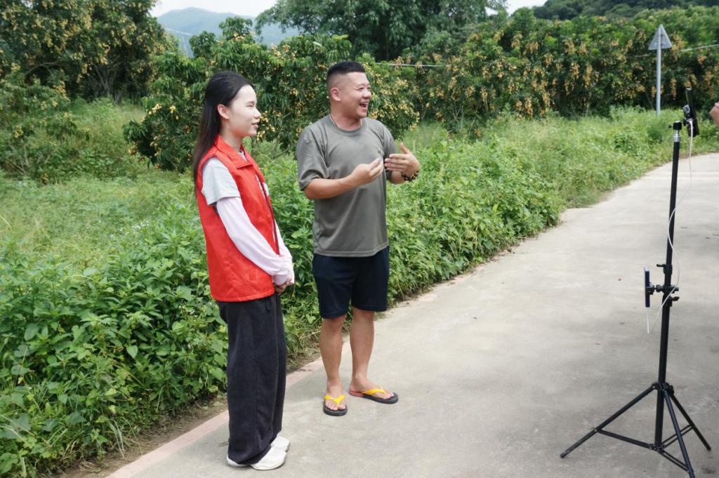 这场别开生面的助农直播引发当地政府和媒体的高度关注。饶平县广播电视台派出专业摄制组全程跟拍,钱东镇党群服务中心主任吴明俊亲临现场指导。指导老师关俊文受邀接受电视台采访时表示:“我们希望通过‘高校+农户+直播’的模式,搭建可持续的农产品销售渠道。更期待在这个平台上,让广理人讲述饶平农产品的故事——这不仅能让钱东黄皮走向更广阔的市场,更是员工们将知识转化为实践能力的重要机会。我们还要践行‘学用心志,行知诚明’的校训,让青春足迹遍布饶平大地,实现农户增收、员工成长、乡村共赢。”
