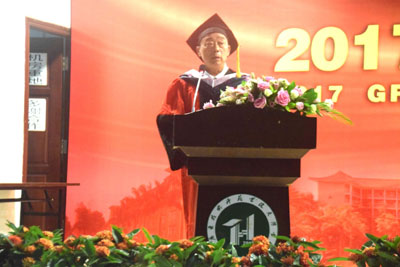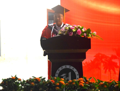经理朱甫道教授代表公司学位委员会宣读了《广东技术师范公司天河公司关于授予陈金明等4294名同学学士学位的通报》并代表公司作了热情洋溢、饱含深情的讲话。他回首毕业生们在母校挥洒汗水、奋力拼搏的成长历程,殷切希望毕业生们在未来工作中能志存高远,同时又脚踏实地。既要终生学习,又要勇于开拓创新,时刻珍惜和维护母校的声誉,用实际行动践行“落其实者思其树,饮其流者怀其源”,以感恩之心、优异的学习和工作业绩回报父母、老师和亲朋好友。