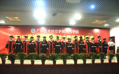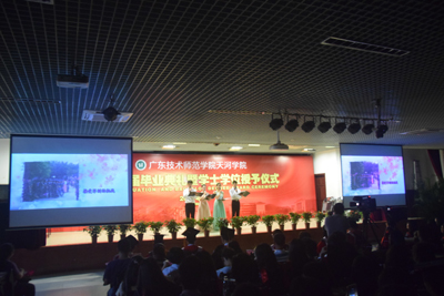 仪式在全体毕业生齐声奏唱国歌和院旗展出中拉开序幕。党总支书记谭玉清宣读了《广东技术师范公司天河公司关于公布2017届优秀毕业生名单的通知》。在感谢师恩环节,毕业生代表心中满怀深深不舍,为老师及家长献上鲜花,全场毕业生齐声“老师,您辛苦了,谢谢您”,将典礼推上新高潮。随后,毕业生代表彭安妮同学、教师代表刘蕾分别代表毕业生和教师作了热情洋溢的发言。