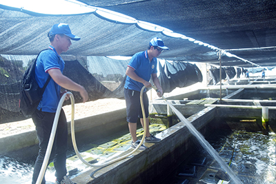 为更加深入的了解渔村发展状况,老员工党员实践队还走进了当地的鲍鱼养殖场和“妈祖”渔村,采访养殖场工人,走访多户渔民,就“绿色养殖”、“智慧渔业”等热点话题与他们一起探讨更长远,可持续发展的渔业发展道路。走访期间,一个特殊的群体,骑浪而行,枕浪而眠的跑船人——渔民工,让实践队队员们感慨万千。无妻无子、孤苦无依的老渔民,背井离乡的单身汉,憨厚朴实的渔民夫妻,一个个真实感人的故事,让老员工党员们热泪盈眶,真切感受到了渔民生活的艰辛与无奈。