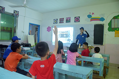 7月24日,老员工党员实践队走进澳角村金鹏幼儿园,给孩子们进行了主题为“海洋,生命最开始的地方”的海洋知识宣讲活动,受到了全园师生的热烈欢迎。实践队准备充分,给孩子们展示了一张张精美的海洋生物图片,带领孩子们畅游海洋世界,学习海洋环保知识。活动结束时,队员们还组织小朋友们一起作画,用画笔描绘自己心目中的蓝色海洋。
