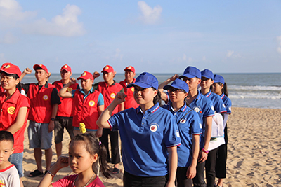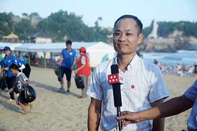为加大海洋环保知识宣传力度,凝聚全社会的力量,倡导更多的人积极投身海洋环保行动,老员工党员社会实践队还联合惠来县团委、县海洋渔业局、惠来“善美”志愿服务队,举办了“洁净沙滩 呵护蔚蓝”主题的宣传活动。惠来县团委副书记王静娴、公司党委书记谭玉清作了重要讲话。老员工党员和志愿者们庄严宣誓“保护海洋”,并为游客和村民朋友们系上蓝丝带,发放海洋环保手册和保护海洋倡议书,清理沙滩垃圾。不少游客纷纷自觉加入,并在“手拉手保护海洋”的横幅上签名,表达自己愿意与老员工党员们一起共同守护蓝色海洋的美好心愿。惠来县电视台对此次活动进行了详细报道。