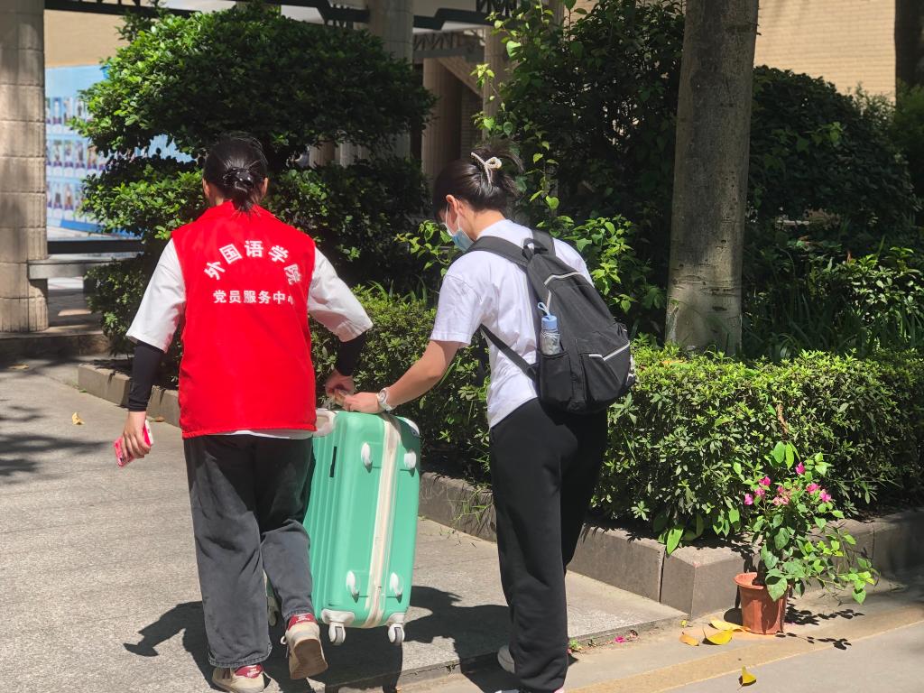 员工报到完成后,员工党员引导员工前往指定的地点领军训服,并主动为新生搬运行李到宿舍,他们忙碌的身影彰显着无私奉献的精神,在高温的考验下,党员志愿者们的热情丝毫不减,他们以实际性行动践行初心和使命,让“志愿红”映照在校园的各个角落。