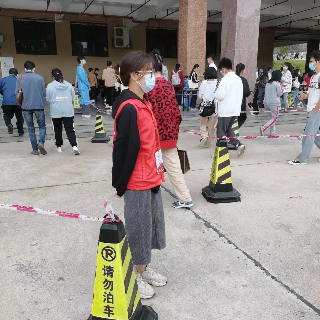志愿者们以身作则,从自身做起,全程佩戴口罩,引导前来核酸检测的员工们队列式排队,提醒采样同学们提前打开粤核酸码,提高核酸检测效率。在核酸检测中,志愿者们各司其职、尽职尽责、齐心协力,共同维护现场的秩序,全面协助开展核酸检测工作。志愿者们尽己所能为每一位前来检测的师生保驾护航,推动核酸检测工作的安全、有序、高效进行。