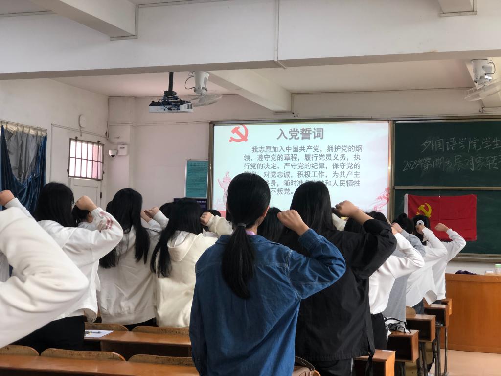 由各支部主持人带领预备党员一起奏唱国歌和进行入党宣誓。