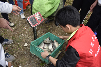 为保证活动公平有序,确保每一个钓位均在优越合理的垂钓范围内,参赛选手通过抽签确定钓位。随着一声令下,钓鱼比赛正式开始。参赛选手们摆开阵势,打开钓竿,挂上鱼饵,纷纷抛竿。大家个个兴致高昂,他们中有经验丰富、动作娴熟的钓鱼爱好者,也有刚刚接触钓鱼的新人。为取得好成绩,选手们各显身手,不同的方式、专业的渔具、秘制的饵料,摆钓竿、打窝子、调浮漂、投饵料、静等待,个个忙得不亦乐乎。有鱼儿上钓,钓者、观者共享其乐,欢声笑语萦绕湖畔。