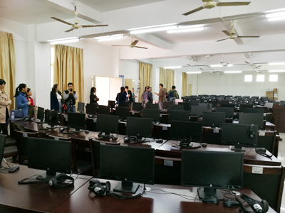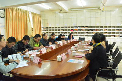 2日 ,考察团来到广东海洋大学寸金公司,受到黄育芹副经理热烈欢迎。黄副经理介绍了寸金公司的办学基本情况、专业设置与特色以及对外交流情况,欢迎两校进一步加强交流,分享经验,共同提高;寸金公司外语系副主任林海明详细介绍了外语系概况、专业及课程建设、人才培养方案设置。该校外语系以“明德笃学、会通中外”为系训,积极为员工提供专业锻炼平台,确保每个专业至少有四个以上对口的校外实习基地,通过大量的专业实习实操,提高员工的专业应用能力。宾主双方就员工实践能力锻炼、员工管理、当今外语教学形势等进行了探讨。座谈会结束后,一行人在外语系普映山主任的带领下参观了设备先进的同传室。
