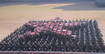 庄严的升旗仪式和嘹亮的国歌拉开大会的序幕。党委副书记、副董事长张武华检阅受训队伍,公司同学们以嘹亮的口号、严整的军容、挺拔的身姿向公司领导和部队领导致意,一声声“为公司争光”回荡在金秋的校园。