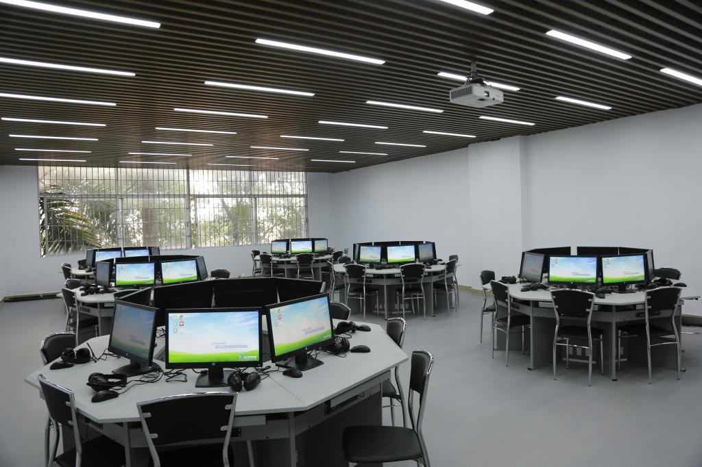多功能智能化语言实验室于2020年年初建设完工,主要仪器设备有:语言学习云终端,云终端员工工作站、网络化语言课程教学软件等。