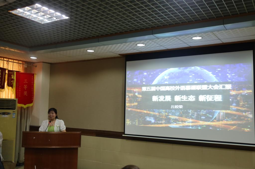 交流会上,吕姣荣老师围绕第五届中国高校外语慕课联盟大会暨第二届虚拟仿真实验教学创新联盟外国语言文学类专业工作委员会大会的内容,分享了《教师数字素养》标准中的教师数字素养框架,其规定了数字化意识、数字技术知识与技能、数字化应用、数字社会责任,以及专业发展五个维度的要求。吕老师带领外院教师进一步认识了人工智能技术、数字化时代给外语教学带来的机遇,鼓励大家一起积极识变、应变、求变,朝着教学目标高阶化、课程体系后现代化、教学模式智慧化、教师角色精细化的方向发展。