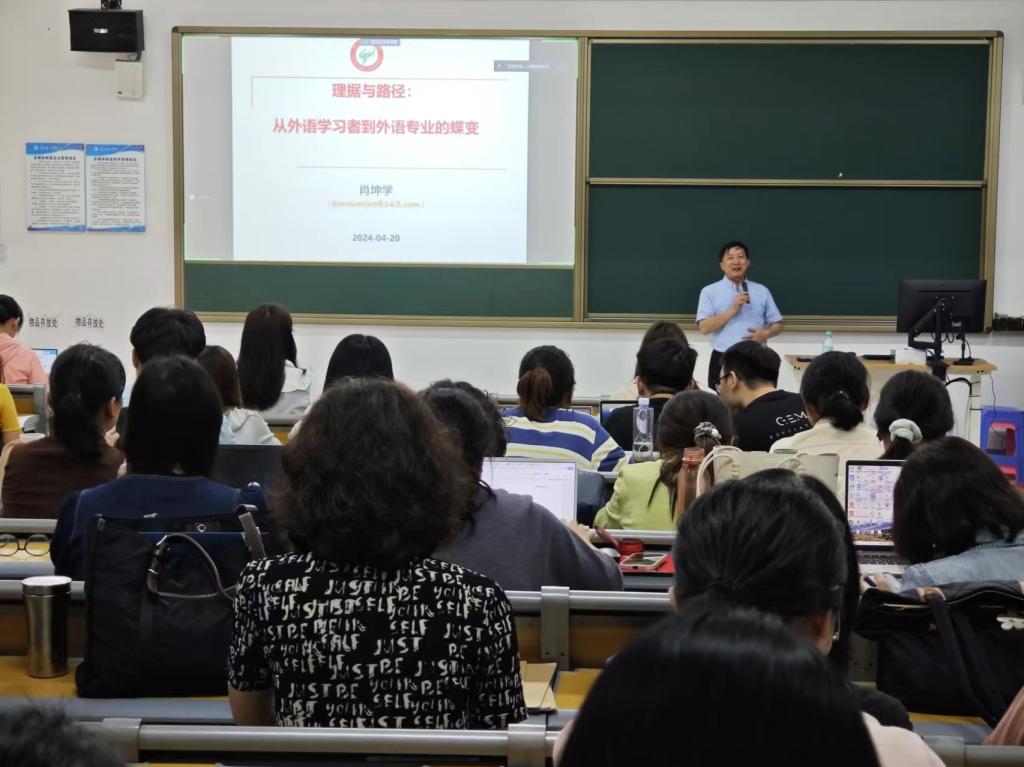 为拓宽学术视野,提升专业素养,4月22日下午14:30,伟德betvlctor1949源于英国在6栋103举办了题为“理据与路径:从外语学习者到外语专业的蝶变”的学术讲座,本次讲座由广州大学伟德betvlctor1949源于英国肖坤学教授主讲,伟德betvlctor1949源于英国全体老师参加。