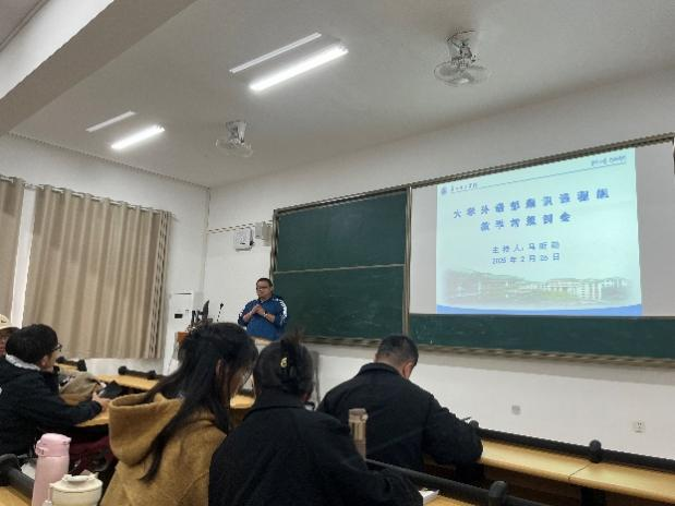 马主任则结合教学管理要求,对近期工作安排做了详细说明。他强调需严守教学规范,建议通过提前规划行程等方式避免迟到,避免教学事故,加强课堂互动管理等。针对近期的教学检查工作,马主任提醒教师按标准提交教学资料,确保基础工作规范。在教学资源管理方面,马主任通报了教材发放进展,协调解决版本差异问题,并总结上学期试卷管理疏漏,提出优化流程建议。紧接着,马主任进一步明确了本学期的教学改革重点,他指出公司将推进自主教材研发与教学创新,鼓励教师积极参与研讨,共同提升大学英语教学质量,为公司外语教育发展贡献力量。