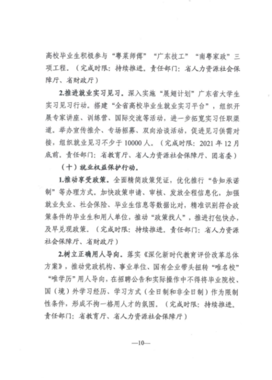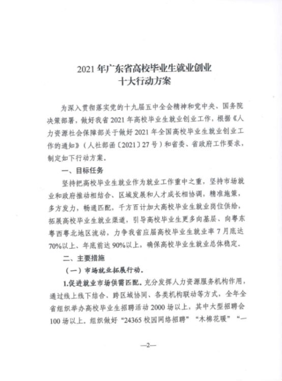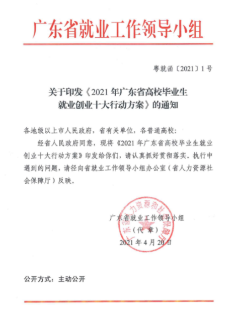 关于转发《2021年广东省高校毕业生就业创业十大行动方案》的通知