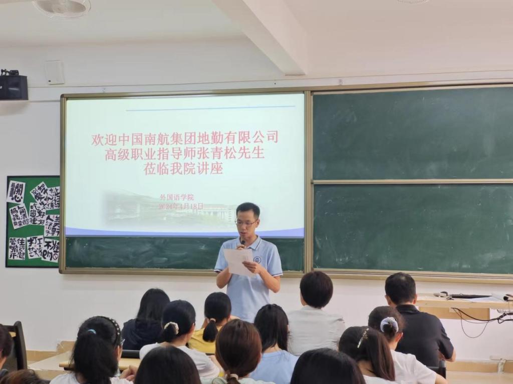 讲座伊始,公司党总支书记、副经理冉海涛首先介绍了讲座主讲人—张青松,同时强调了本次讲座的主要目的,即合理的职业生涯规划不仅能帮助同学们找到发挥自我潜能的路径,更能提高自身的创业创新能力。随后,中国南航集团地勤有限公司高级职业指导师张青松先生开始主题讲座。他为同学们讲解了职业生涯规划的重要性,并与同学们进行了多样性互动,利用真实案例结合自身体会,教会同学们更客观地分析自己的核心潜能,正确认识自己的长处和优势,并结合个人实际情况确定适合自己的职业方向。讲座最后,张青松先生勉励大家要坚持有效的生涯行为,勇敢追求自己的人生!