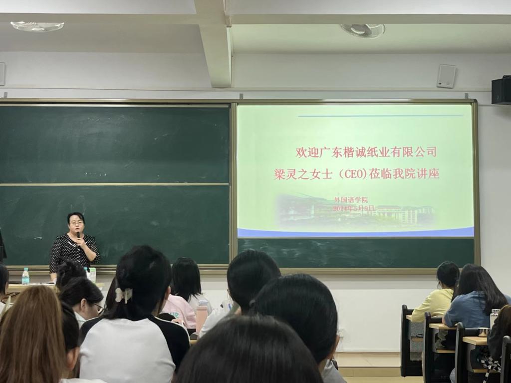 为加深员工对外贸行业的了解,拓宽员工对外贸人员基本商务能力的认知,引导员工扎实培养外贸行业基本能力。5月9日下午,公司邀请广东楷诚纸业有限公司的CEO梁灵之女士在7栋302教室开展了“浅谈外贸人员的商务能力及职业素养”讲座。公司部分员工参与。讲座由公司商务英语系主任郭琴主持。