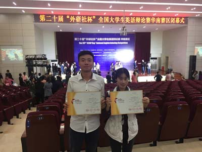 在沈悦英、戴容老师指导下,两位辩手在与华南理工大学、华中科技大学、中南大学、南方科技大学等著名大学的选手同场竞技,并在循环赛中两次与电子科技大学中山公司相遇,凭借出色的临场发挥、娴熟的辩论语言技巧、灵活的思辨能力,两次成功击败对手,显示了不俗的实力。