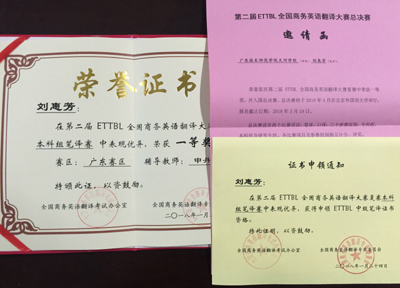 经过严格规范的初赛选拔和集中强化辅导后,公司公司组织员工参加了2017年12月中旬举行的本科组笔译复赛。从近日公布的比赛结果看,除了上述三名员工喜获广东省赛区一等奖外,还有多名员工获得二等奖和三等奖,共计15名员工获得申领全国商务英语翻译中级证书的资格。