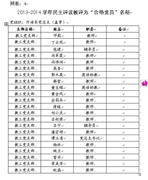 5月下旬,我系教工党支部召开2013-2014学年度民主评议党员大会,会议由党支部书记肖柳主持,全体党员共29人参加了会议。