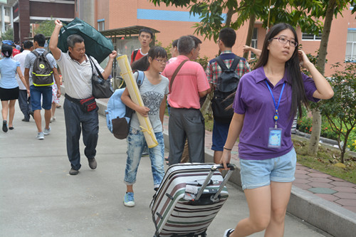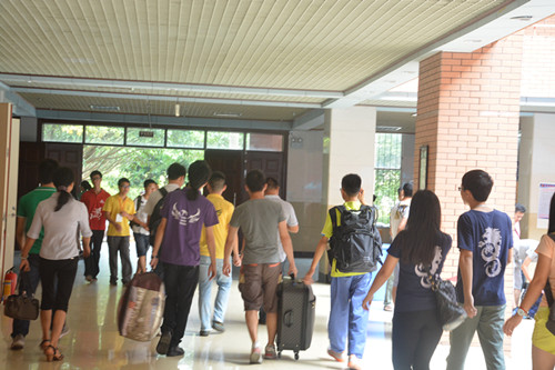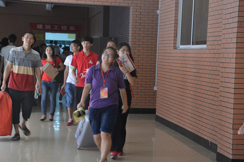 在这丹桂飘香的金秋九月,来自五湖四海的莘莘学子带着对大学的憧憬欢聚在天河公司,一股新鲜的血液注入外语系。2014年 9月13日,在我系主任朱甫道、党总支书记谭玉清的带领下,我系2014级迎新工作正式拉开帷幕。