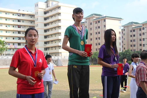 来自本英高翻114班的邓楚娜在此次校运会中表现尤为出色。她获得女子组跳高冠军,这已是她连续三年获得跳高冠军,并多次破公司纪录,她还摘取女子组三级跳远桂冠,成为名至实归的大赢家。而本英语137班陈佳凯更是外语系男生的骄傲,就荣获得男子组800米亚军和400米第四名。