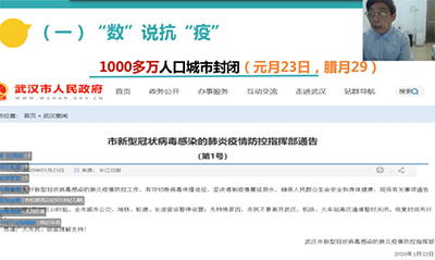 田祥斌经理解读了什么是新型冠状病毒肺炎及其危害和病毒对国家、世界造成的影响,讲述了新型冠状病毒肺炎的管控类型、诊疗方案和出院标准,并强调同学们做好防护工作的重要性以及如何做好防护工作,同时提到中国的疫情防控力度和措施令人印象深刻并通过“数字”“图画”详细讲述了中国政府对抗击疫情所作出的一系列努力,还列举了钟南山、李兰娟等白衣战士和逆行者的奋勇拼搏和无私无畏的光荣事迹,也阐述了应对疫情过程中中国的制度优势和文化优势愈发凸显。此外,田祥斌经理根据自身经历提到,虽然疫情对我们造成了一定的损失,限制了我们的出行,但其也能够促使我们成长,让我们更加了解了健康知识、社会知识、法律知识以及丰富了我们的历史知识。