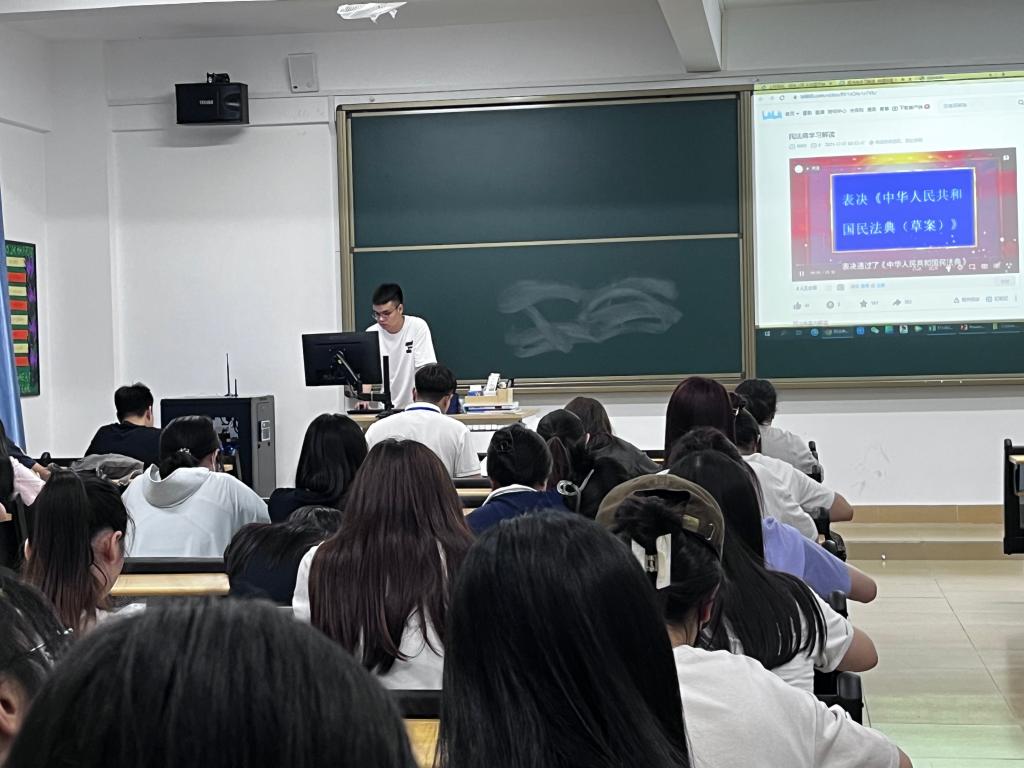 为了让同学们进一步了解民法典,培养浓厚的学法氛围,伟德betvlctor1949源于英国于5月28日晚在六栋及七栋各班会课室开展“学习民法典”主题班会。