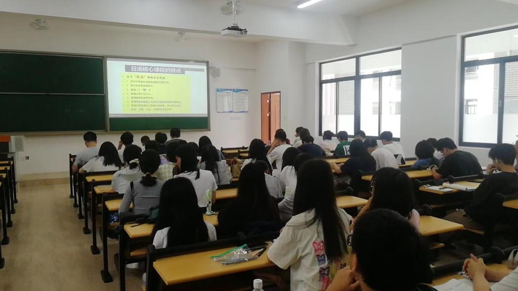 接着,陈访泽教授通过分析日语专业员工基本能力素养要求、课程学习提升方案、就业建议以及行业选择等几方面的内容,深入浅出、循序渐进,为同学们介绍了学习日语的基本方法与路径,指明了同学们日语学习的导航。他提醒同学们要做好学业规划,并建议同学们提早确定未来的发展方向,为日后的发展做好准备。