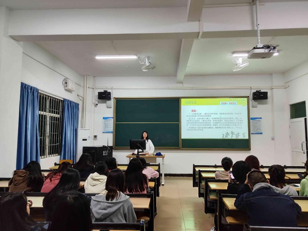 此次班会主要包含“出行交通安全”、“财物、宿舍、食品、人身安全”、“注意文化生活,严防精神污染”和“度过一个有意义的假期”四个方面。各班班会主持人提醒同学们在骑车、驾车等外出时,要遵守交通规则,时刻注意交通安全问题,如遇危险及时拨打110报警求助。关于假期“财物、宿舍、食品、人身安全”,主持人提醒同学们放假离校前一定要关好宿舍门窗,关闭宿舍所有电源、水阀,不要把贵重物品放在宿舍内。与此同时,同学们在假期也要注意食品安全,提高兼职安全防范意识,树立网络责任意识和道德意识、严守网络中的法律,注意人身安全。最后,主持人们号召同学们要牢固树立“安全第一”的思想,时时讲安全,事事讲安全,人人讲安全,保证人人都安全。