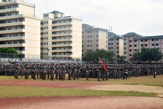 一幅幅精彩的照片,透露出新生们的认真与自信。通过教官的严格训练,短短十四天的军训,新生们便将匕首操、军体拳、反恐队等预定训练科目表演地淋漓尽致。新生们一致的口令、嘹亮的声音、整齐的步伐、矫健的身姿赢得了在场众人热烈的掌声。