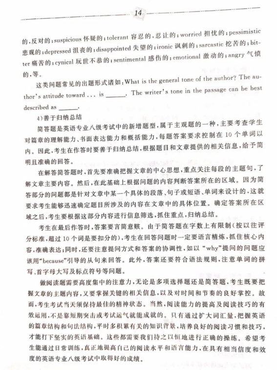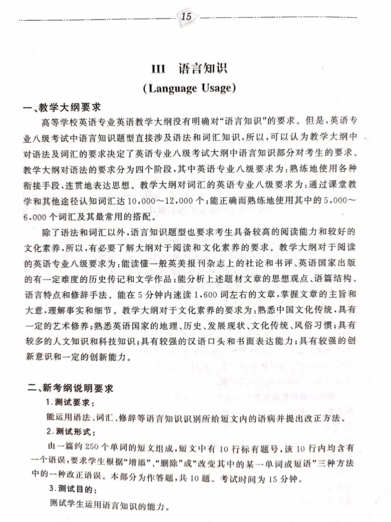 英语专业八级大纲详解,随附解题技巧