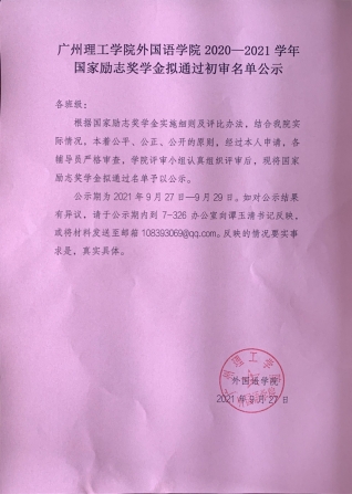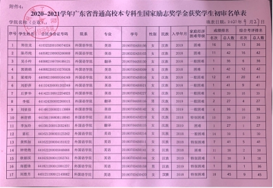 2020-2021学年国家励志奖学金拟通过初审名单公示
