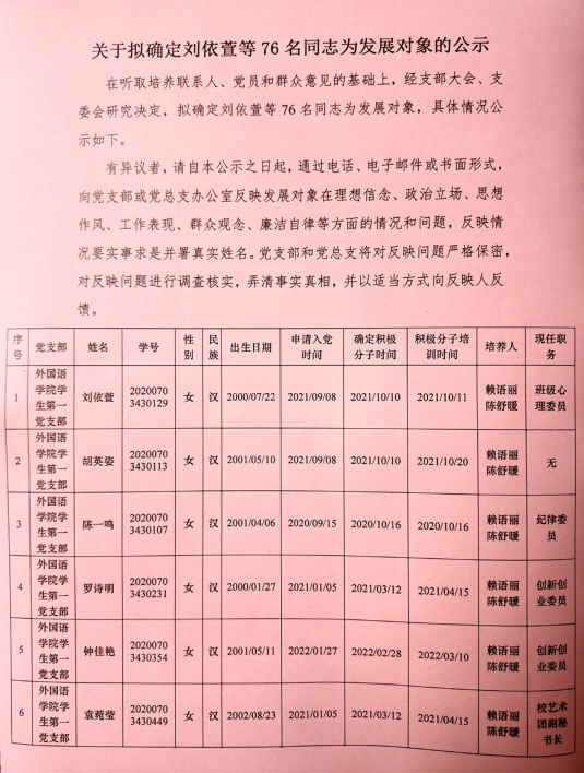 伟德betvlctor1949源于英国关于拟确定刘依萱等76名同志为发展对象的公示