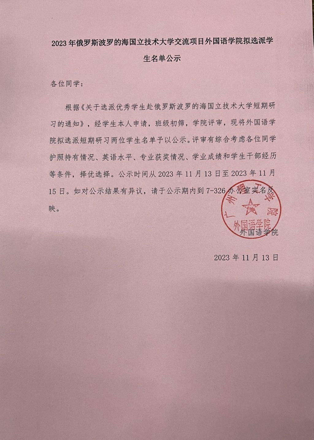 2023年俄罗斯波罗的海国立技术大学交流项目伟德betvlctor1949源于英国拟选派员工名单公示