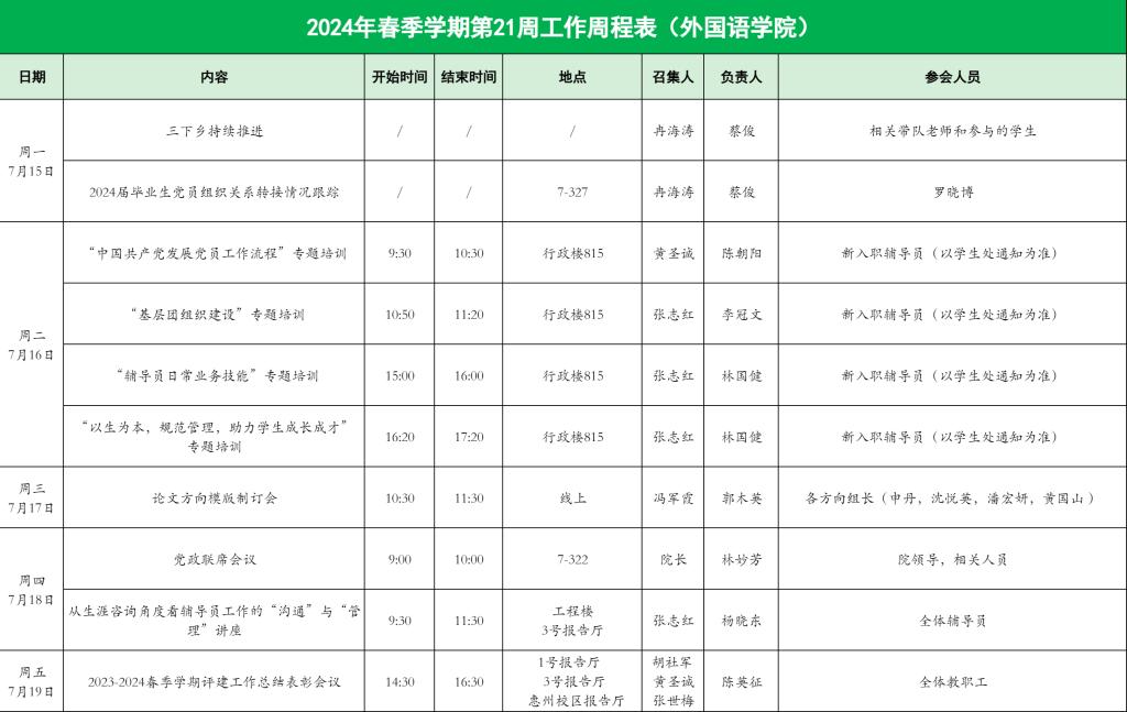 2024年春季学期第21周工作周程表