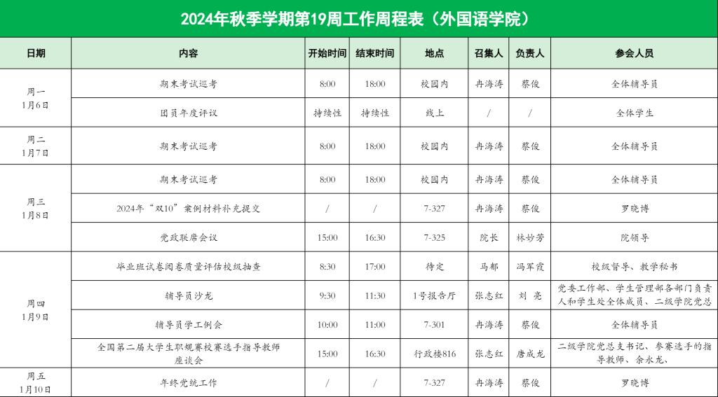 2024年秋季学期第19周工作周程表