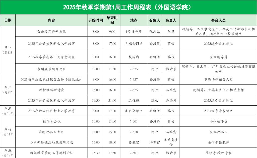 2025年秋季学期第1周工作周程表