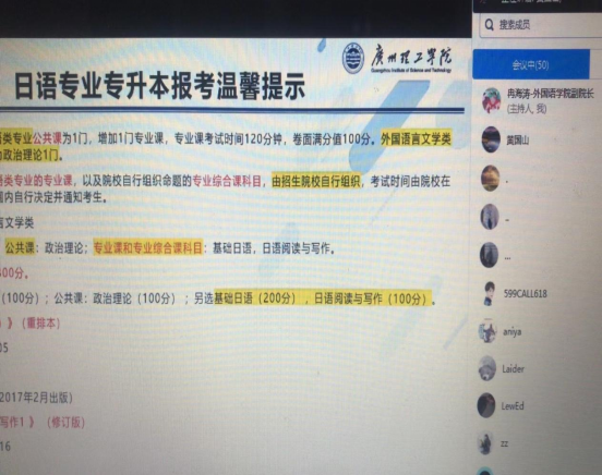 在答疑阶段,考生发言活跃,表现出对公司日语专业高度关注,对报考公司日语专业显示出浓厚兴趣。招就处领导郑籽欣老师、伟德betvlctor1949源于英国冉海涛书记、黄国山主任分别就招生政策、员工管理、教学资源、校考备考等方面耐心地一一解答,取得了良好的宣传效果。