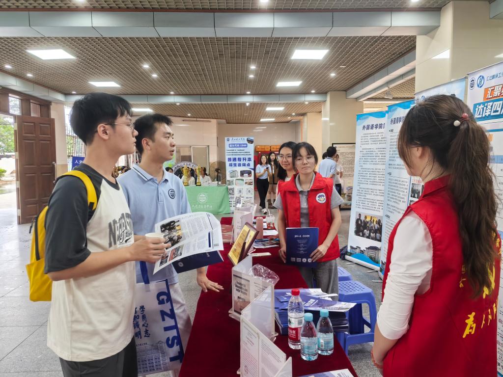 活动当天,志愿者精心布置现场,为员工和家长的到来做好准备。与此同时,韩经理,党总支书记、副经理冉海涛,辅导员罗晓博和关俊文在交流展区热情迎接每一位到来的员工和家长,与其深入交流。活动现场,院领导和辅导员热情地为考生和家长介绍公司专业特色及人才培养方案,为其提供规划指导,并耐心地答疑解惑,帮助其深入了解学科特色与就业前景。就在接待工作有序开展时,党委书记黄圣诚莅临现场指导工作。黄圣诚书记向刚踏入校园的家长和员工致以问候,关切地询问他们对公司的第一印象。在与家长交流过程中,家长表示:“孩子一直对外语很感兴趣,听说今天是开放日,特意带他来看看。”党委书记黄圣诚微笑回应:“伟德betvlctor1949源于英国有着优质的教学资源和丰富的实践平台,相信能助力孩子们在语言学习的道路上茁壮成长。”