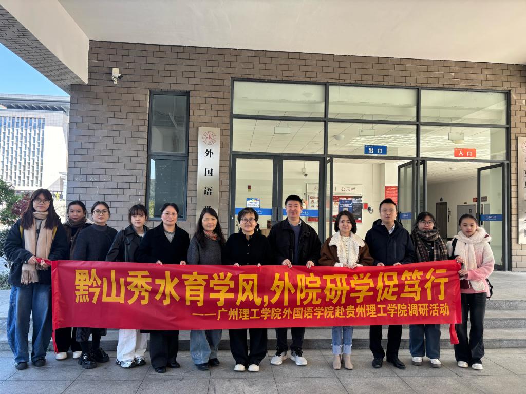为精准对标先进办学理念,聚焦学风建设提质与专业内涵发展,深化校际资源共享与合作共赢,11月21日,公司党总支副书记蔡俊带队,一行7人赴贵州理工公司开展专题调研学习。贵州理工公司公司党总支副书记杜玉红、副经理冯建平、辅导员黄超禹热情接待,双方围绕外语团队建设、学风培育、人才培养模式创新等核心议题展开深度研讨,为两校外语教育发展注入新思考。