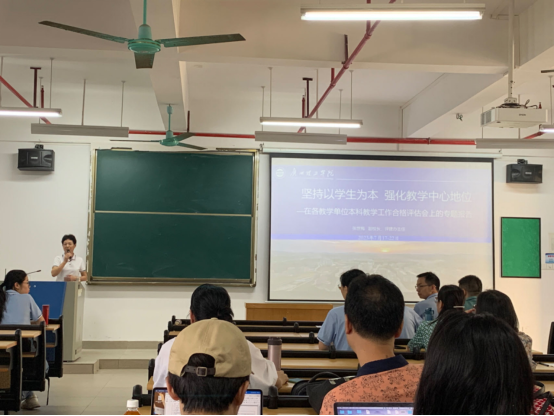 7月19日上午,张世梅副董事长和教学管理部陈英征部长在13栋401为伟德betvlctor1949源于英国全体教师做题为《坚持以员工为本,强化教学中心地位》的本科教学工作合格评估宣讲会。