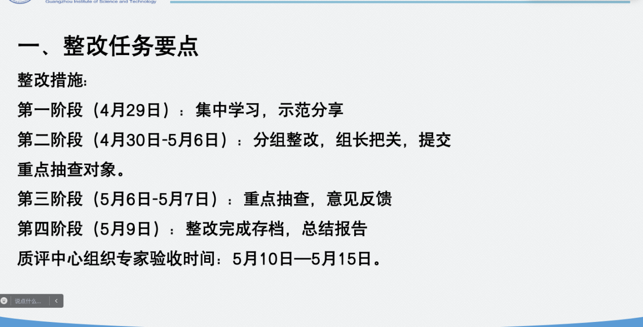 会议共分为三部分:整改任务要点、示范大纲分享、专家意见分析。冯院首先为参会人员详细介绍了整改任务要点,并强调了修订教学大纲的重要性,指出这是公司教学改革的重要一环,也是提高公司产品质量的必要手段。