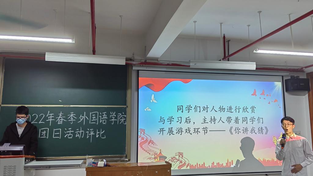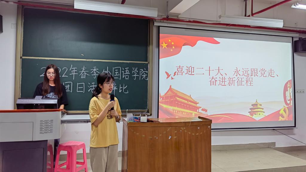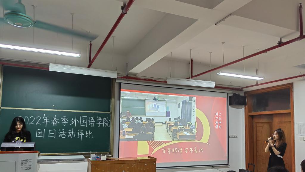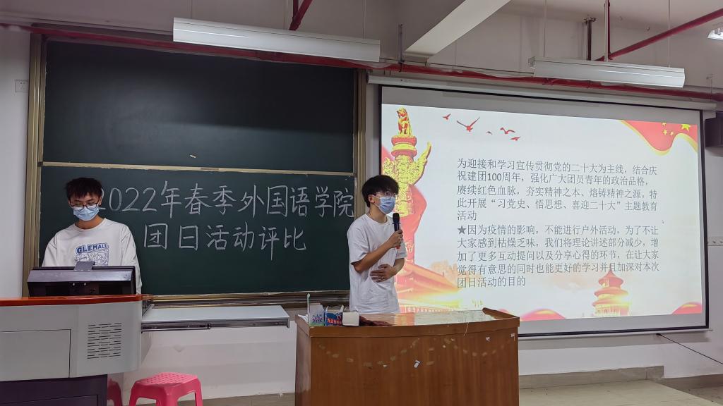 本次团日活动的评比主题为:喜迎二十大、永远跟党走、奋进新征程。各班级派代表上台展示班级团日活动成果,比赛形式分为三分钟展示加两分钟答辩。各班级积极组织本次活动,充分展现了班级内部的凝聚力。其中,颇具特色的红船精神、云参观博物馆等活动让现场观众赞不绝口。最后,21英语4班获得本次团日活动评比一等奖,21英语5班获得二等奖,21英语7班、21日语2班并列三等奖。