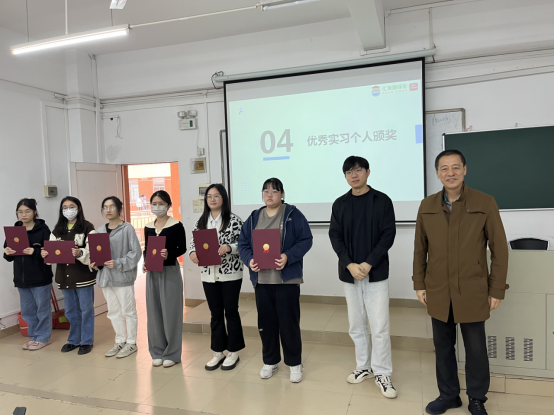 之后,宋志峰老师宣读了表彰决定,表彰此次实习的优秀实习生个人、优秀实习组长以及优秀指导老师。宋志峰与李永海老师为相关人员进行颁奖,对员工实习工作给予了充分的肯定。