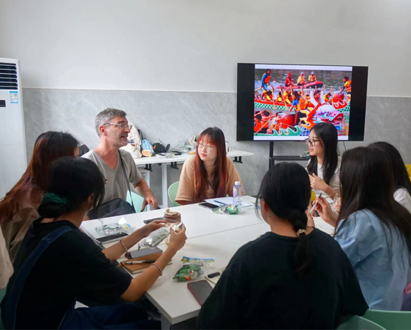 活动伊始,老师和助教们带领同学们参与了一系列充满趣味的破冰游戏,迅速拉近了彼此的距离,增进了彼此的了解和交流。随后,师生们围绕“Journey through Dragon Boat”这一主题展开讨论,畅所欲言,展现了各自独特的见解。在老师们的引导下,同学们积极发言,分享了对龙舟文化的理解和感悟。