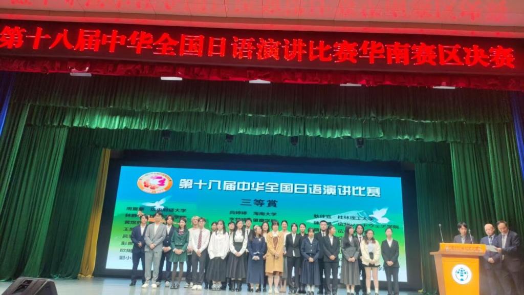 11月24日,由中国教育国际交流协会与日本经济新闻社、中日学术交流中心(日本华人教授会议)联合举办的第十八届中华全国日语演讲比赛(华南赛区)在广东外语外贸大学落下帷幕。公司2021级日语专业员工从华南地区各高校30多名选手中脱颖而出,获得三等奖。