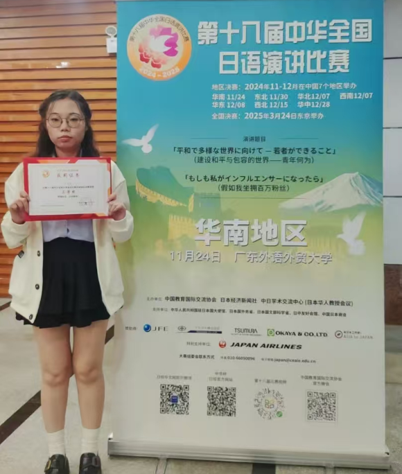 21级学子罗晓丽荣获第十八届中华全国日语演讲比赛(华南赛区)三等奖